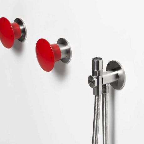 Ironisch, weil er etwas anderes zu sein scheint, amüsant wegen seiner intelligenten Funktionsweise, fesselnd, weil er jedem Duschraum einen Hauch von Farbe verleiht, einladend, weil, wenn es stimmt, dass er in der kollektiven Vorstellung ein Notfallknopf ist, der nur in Fällen äußerster Notwendigkeit benutzt werden sollte, wie oft waren wir schon versucht, ihn zu drücken, um zu sehen, was tatsächlich passieren würde? Gi-RA design präsentiert ein Projekt, das mit der Umkehrung der Bedeutung spielt und einen Notrufknopf in ein Bedienelement für den täglichen Gebrauch verwandelt, wie der Name unterstreicht: Mayday ist ein ferngesteuerter, wandmontierter Einhebelmischer, der sich für mehrere Anwendungen eignet: Waschtischarmatur, Duschkopf, Handbrause. Wenn Sie also dem Drang, ihn zu drücken, nicht widerstehen können, werden Sie vielleicht eine Überraschung erleben. Die Umkehrung der Bedeutungen wird sogar noch weiter getrieben, wenn man die Bedienung betrachtet. Das Wasser öffnet sich nämlich dank einer axialen Bewegung, und zwar nicht, wie man erwarten würde, durch Drücken des Knopfes, sondern durch Heranziehen. Der Wasserstrahl wird durch Drehen des Knopfes nach rechts und links gemischt, während die Düse durch Drücken geschlossen wird. Eine neue Art, den Mischer zu interpretieren und seine Eigenschaften und Betriebsarten neu zu definieren.