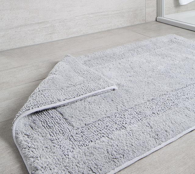 Tappeti da bagno per un insieme armonioso nel vostro bagno. i tappetti sono al 100% in fibra naturale, per esempio la serie HOME é dal 100% cotone reversibile su 2 lati.