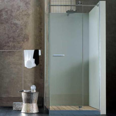 In RASODOCCIA la distribuzione idraulica viene contenuta nel piatto base incassato, in cui integrare la costruzione modulare della cabina in vetro, in continuità con il pavimento e lo sviluppo delle pareti.