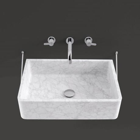 Aus weißem Carrara-Marmor, dem ewigen Material der Kunst und der Architektur, entsteht dieses Waschbecken mit großem Becken und dünnen Rändern, das von einer Edelstahlstruktur getragen oder auf eine Arbeitsplatte gestellt wird. Carrara, essentiell und kostbar, hat die Fähigkeit, sich in die unterschiedlichsten Kontexte einzufügen und sie mit seiner Eleganz und Strenge zu qualifizieren, die Outdoor-Version ist aus Petit Granit-Marmor. Die neue Agape Outdoor Collection erweitert die Grenzen dieser Umgebungen nach draußen, wo das Blau des Himmels, das Rascheln der Bäume oder der anregende Puls der Großstadt zu einer natürlichen und idealen Ergänzung des Agape-Badezimmers werden.