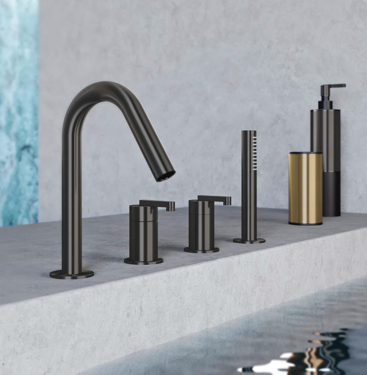 La collezione Kira, progettata dal designer Stefano Macchion, comprende rubinetti in stile industriale per ambienti di lusso. In sintonia con il carattere audace e accattivante del rib, è stata scelta la versione del rubinetto miscelatore, personalizzata con l'esclusiva finitura PVD carbon, un trattamento di alta qualità che aumenta ulteriormente la resistenza superficiale dell'acciaio inossidabile.