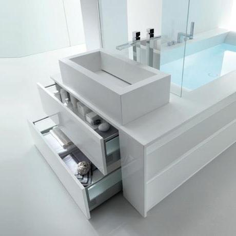 Realizzata in Corian e dotata di sistema idromassaggio airpool, diventa il centro di una sala da bagno dove l’estetica contemporanea dà un nuovo significato alle funzioni, aprendo orizzonti di stile, comfort e progettualità.